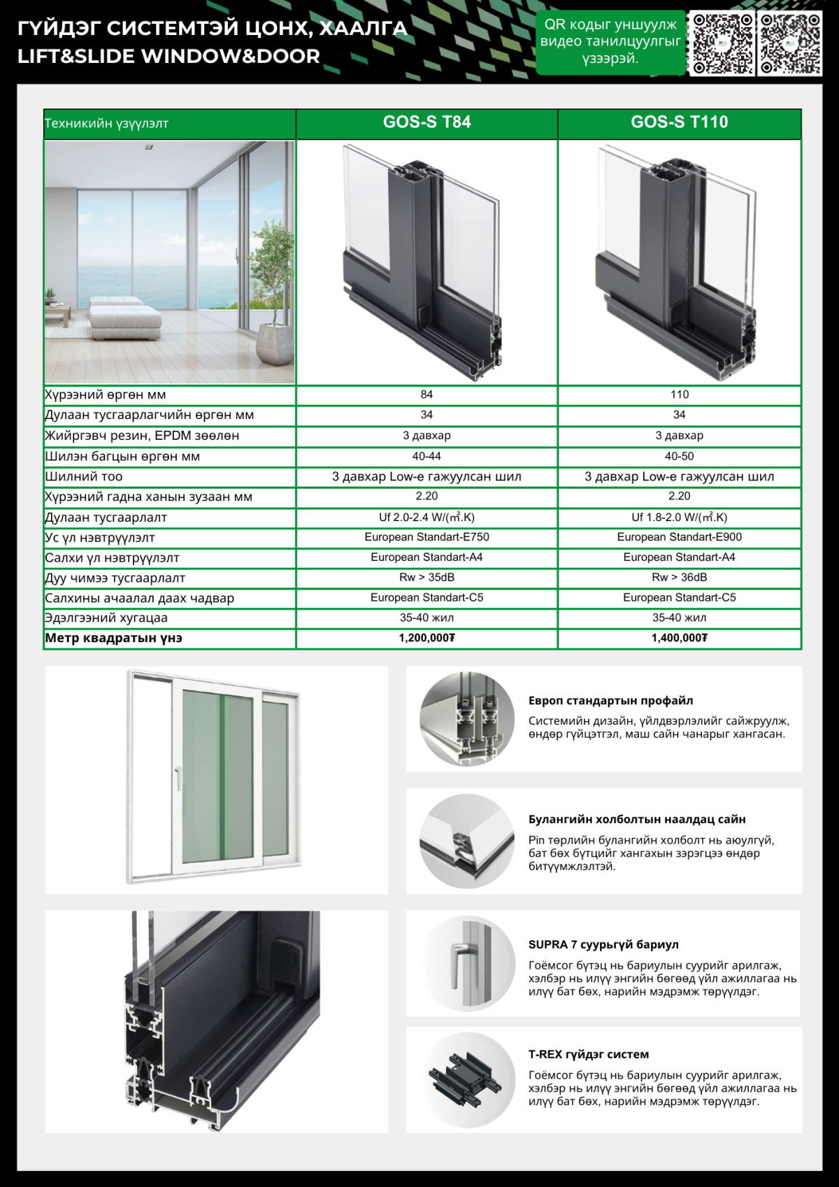 GOS-S T110 HD Гүйдэг системтэй металл хаалга